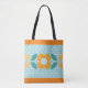 Retro Flower, Geo Pattern Aqua, Orange, Teal Tote Bag