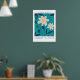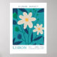 Add a splash of Mediterranean charm to your decor with the "Retro Flower Market Lisbon Abstract Flowers Poster." This elegant piece features a refined design with "Flower Market" and "Lisbon" rendered in vintage-inspired typography. The artwork showcases a captivating arrangement of white flowers with deep blue leaves, set against a soothing turquoise background.