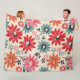 Retro Flower Pattern Red Orange Blue Fleece Blanket