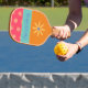 This is a cute, stylish personalised retro flower design. It has a retro flower in sunshine yellow and trending blue, aqua and pink colours. It's perfect as a great personalised gift or ideal as a new pickleball accessory for yourself. For help with personalisation or customisation, or for a custom design email: ursuladawnmoon@gmail.com