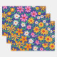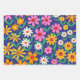 This is beautiful retro boho flowers pattern in pink, orange, yellow and white with branches and green leaves on navy blue background. It's great looking gift wrap for parties.