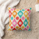 Retro Flowers on Colourful Harlequin Diamonds Cushion