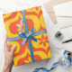 Retro Flowers on Yellow and Red Ogee Pattern Wrapping Paper
