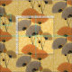 Retro inspired fabric print in lovely shades of mustard yellow, orange, taupe, black and white. A very stylish fabric with a combination of whimsical poppy like flowers and polka dot spots.