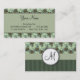 Retro Flowers Sea Green with Stripes and Monogram Business Card