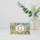 Cute retro flowers turquoise blue brown floral pattern custom monogram business cards, featuring a lovely pattern of abstract flowers in turquoise blue with brown outline on olive green background and your monogram in an ivory frame. Change text to personalise it and add your name or your company. A feminine, girly, floral design with a vintage feel to it.