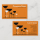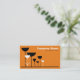 A business card template design with an abstract mid-century style flowers motif. Company name and business type etc on the front with name and other details on the reverse side with the same flowers motif.