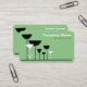 A business card template design with an abstract mid-century style flowers motif. Company name and business type etc on the front with name and other details on the reverse side with the same flowers motif.