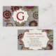 Cute retro flowers red, green grey floral pattern custom monogram business cards, featuring a lovely pattern of abstract flowers in red, green on grey background and your monogram in an ivory frame with brown outline. Change text to personalise it and add your name or your company. A feminine, girly, floral design with a vintage feel to it.