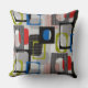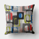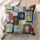 20” x 20” throw pillow with a 50s-style image, on both sides, of blue, green, black and grey striped frames, red striped rectangles, black plaid rectangles, solid red and white rectangles, and grey squares on grey. See matching round throw pillow, accent pillow and cube pouf pillow. See the entire Nifty 50s Pillow collection in the DECOR | Pillows section.