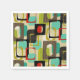 Package of 50 white paper cocktail napkins with a fun retro image of black, brown, red and mustard frames, black and yellow patterned rectangles, and turquoise and white squares on tan. See matching cloth napkin, kitchen towel, cloth placemat, paper placemat and coasters. See the entire Nifty 50s Napkin collection in the FOOD/BEV | Linens section.