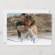 Retro french blue Elegant 4 Photos script wedding Invitation
