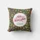 This fabulous Christmas folk art 16" x 16" green pillow with a pattern of santas, gingerbread men, Christmas trees, ornaments, angels and presents that says Merry Christmas in German "Frohe Weihnachten" and has your last name would look awesome on your couch, bed or chairs! It's so festive and will go with any Christmas decor - it's rustic yet retro and modern yet traditional! It'll look fantastic and add that little extra Christmas touch to your home!