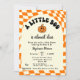 Retro Fun Wavy Chequered A Little Boo Is Almost Due Halloween Baby Shower Invitation - A fun and unique fall baby shower theme with pumpkin happy face, retro orange and cream chequerboard pattern and bubble font. Simple and cute, this editable baby shower invitation template can be customised with your own event details. Available in digital format, easily send via email, social media or text.