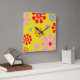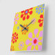 Retro Funky Flower Pattern Yellow Wall Clock