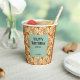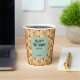This retro groovy birthday paper cup features an abstract daisy flower in a groovy funky trippy style, a seamless pattern on a brown background.