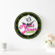 Funny kitchen wall clocks in a 1950s retro style with a touch of humour and a lot of style. Clock says Mum's Diner and is designed in bold pink, green, and black colours.