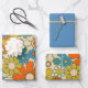 Retro Garden Floral 60s 70s Pattern Wrapping Paper Sheet