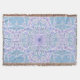 A quality printed throw has its advantages. This is a much finer weave throw than its loopier cousins, and though lighter, it is worth the investment for custom room accessorizing. The back is much prettier than the typical brown, and the fringe on the long sides very vivid, the selvage nicely done. Before photographing, I washed the throw in cold water, delicate, with a thicker woven throw the same size. On tumble dry low, this throw was dry in half the time as the other. This is a very practical quality if you use throws for furniture covers or to wrap up in frequently. The sleekness of the fabric makes it a great layer for accenting or protecting without the feeling of sitting on too much stuff. Perfect for napping or when you feel a light chill coming on. The color printing is beautiful and on this fabric, matched the design and color of my Photoshop image. This is an advantage for blending room fabrics and colors. The fringe on the short sides prints the colors from the design image and therefore varies from the side fringe. I streaked a white fractal line through the plaid pattern to give the illusion of weaving. This printed as crisp as an illusory thread, and put some white in the short side fringe, showing another advantage of print vs loomed- for artistic purposes, line lines, detail, and color integrity can be planned and preserved. My loomed throws have color limitations and more of a needlepoint texture. Print throws reproduce an exact image. The throw felt a little stiff straight out of the package, but this went away in the first delicate wash. Of course I searched the wash water for ink or bleeding and there was none.