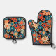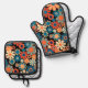 Retro Garden Groovy Nighttime Floral Pattern Oven Mitt & Pot Holder Set