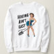 A humourous gardening women's sweatshirt design with a Retro Pin Up girl and the typographic saying hoeing ain't easy