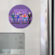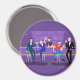 This Retro Gay Bar Magnet design is purple, kitschy, and utterly fabulous! Sitting on mid century modern barstools, drinking their fun, pink beverages, these dapper gentlemen are having a gay ol’ time. The hunky bartender with a pink bowtie is already pouring the next round. The silhouettes of atomic liquor bottles line the wall and the vintage 1960’s sputnik style light fixture hangs off to the side. The only thing straight about this bar is the bar!