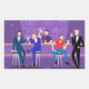This Retro Gay Bar Sticker design is purple, kitschy, and utterly fabulous! Sitting on mid century modern barstools, drinking their fun, pink beverages, these dapper gentlemen are having a gay ol’ time. The hunky bartender with a pink bowtie is already pouring the next round. The silhouettes of atomic liquor bottles line the wall and the vintage 1960’s sputnik style light fixture hangs off to the side. The only thing straight about this bar is the bar!