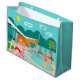 This Retro Gay Pool Party Gift Bag features four hunky beefcakes having a gay old time as they beat the Palm Springs heat by lounging around the turquoise blue water of their atomic boomerang shaped swimming pool. The mid century modern architecture on the fabulous, orange stone house is clearly prime real estate, given the view of the mountains in the background. A yellow starburst sun shines brightly in the turquoise sky so you are able to see every charming detail--from the kitschy, pink flamingos to the 1950’s striped, breezy blocks fence. And of course what Palm Springs House would be complete without a palm tree?