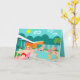 This Retro Gay Pool Party Greeting Card design features four hunky beefcakes having a gay old time as they beat the Palm Springs heat by lounging around the turquoise blue water of their atomic boomerang shaped swimming pool. The mid century modern architecture on the fabulous, orange stone house is clearly prime real estate, given the view of the mountains in the background. A yellow starburst sun shines brightly in the turquoise sky so you are able to see every charming detail--from the kitschy, pink flamingos to the 1950’s striped, breezy blocks fence. And of course what Palm Springs House would be complete without a palm tree?