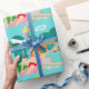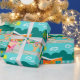 This Retro Gay Pool Party Wrapping Paper features four hunky beefcakes having a gay old time as they beat the Palm Springs heat by lounging around the turquoise blue water of their atomic boomerang shaped swimming pool. The mid century modern architecture on the fabulous, orange stone house is clearly prime real estate, given the view of the mountains in the background. A yellow starburst sun shines brightly in the turquoise sky so you are able to see every charming detail--from the kitschy, pink flamingos to the 1950’s striped, breezy blocks fence. And of course what Palm Springs House would be complete without a palm tree?