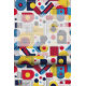 This Memphis-inspired geometric abstract design brings a modern twist to mid-century style with it's playful shapes and bold palette of navy blue, red and yellow on a crisp white background. The dynamic composition captures the essence of mid-century modern patterns.