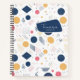 This Memphis-inspired geometric abstract design brings a modern twist to mid-century style with it's playful shapes and bold palette of navy blue, golden yellow, and deep rose pink on a crisp white background. The dynamic composition captures the essence of mid-century modern patterns. Perfect for back-to-school, collecting family recipes or even artist portfolio, this versatile notebook design can be easily personalised to suit your unique style using the supplied template. Try out Zazzle's handy transfer option or search ID1067 to see additional patterns and products in this design set. Note: pattern adapted from generative content.