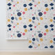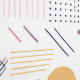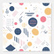 This Memphis-inspired geometric abstract design brings a modern twist to mid-century style with it's playful shapes and bold palette of navy blue, golden yellow, and deep rose pink on a crisp white background. The dynamic composition captures the essence of mid-century modern patterns.