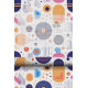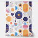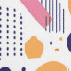 This Memphis-inspired geometric abstract design brings a modern twist to mid-century style with it's playful shapes and bold palette of dark indigo, apricot, and rose pink on a crisp white background. The dynamic composition captures the essence of mid-century modern patterns.