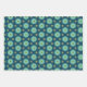 Retro Geometric Flowers Bright Yellow Blue, Teal Wrapping Paper Sheet