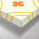 Delicate and feminine are the words that come to mind as you look upon this classic retro abstract geometric interlocking circle pattern in orange with beige background and it's colourful beautiful tiny jewel toned flowers that is oh so mid-century modern and super cute as well. This minimalist geometric interlocking circle pattern translates perfectly to both fashion and home decor items. The perfect gift for any mad man era enthusiast in your life .