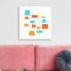 This mid century modern canvas artwork features various squares, rectangles and lines in a combination of colours popular in the mid 20th century as well as today - teal blue, two shades of orange, cream and black. This will make a colourful addition to your home decor!