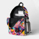 A bright geometric retro pattern on an all over print bag. Customise this design with your initials for that personal one of a kind touch.