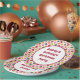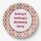 Add your own custom message to these paper plates which are perfect for all of your holiday celebrations. They feature a retro style geometric pattern in 1970s Christmas colours of red, dark green, lime green, pink and orange. Your text is in bold red lettering in the centre.