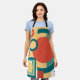 This striking abstract composition captures the essence of retro vintage geometric design, drawing clear inspiration from traditional risograph printing, risoprint textures, and linocut techniques. The artwork features a balanced interplay of bold circular forms, structured squares, and sweeping arcs, layered to create depth and visual rhythm. A warm, muted colour palette—dominated by earthy ochres, teal greens, and burnt reds—evokes mid-century modern aesthetics while maintaining a timeless, handcrafted appeal.