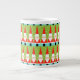Any way you look at it this Retro Geometric Santa Jumbo Mug is pure holiday whimsy! It’s rows of Santas. No, it’s rows of Christmas trees. No, it’s rows of Santas shaped like Christmas trees and rows of cheery green Christmas trees with white polka dots. It’s kitschy. It’s colourful. And it if doesn’t put you in the holiday spirit, something is definitely wrong with you! Each identical triangular Santa Claus is wearing his trademark red and white suit and hat. Each hat has a yellow starburst on top, which serves as a tassel for Santa’s headwear and a vintage star for a Christmas tree. Old Saint Nick has a well-groomed white beard, jolly red nose and cheerful curved eyes. Each Santa’s black boots also serve as a trunk to a Christmas tree. Where Santa’s feet and tree trunks meet, there is a stripe of mid century inspired aqua. A purchase of this product is guaranteed to keep you off the naughty list no matter what you’ve done!