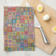 Retro Geometric Square Tile Pattern Tea Towel