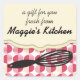Fun food gift tag sticker, catering or bakery sticker for chefs, cooks, baking or caterer with kitchen whisk and fancy text frame, and background in retro red and flesh tone or sand geometric circles pattern with a touch of stipes. You can resize, rotate and move images to get the look you want. Looks great in lots of different background colours, too!