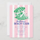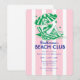 Retro Girl Pink Stripes Beach Club Birthday Party Invitation