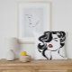 Lovely, vintage girly theme in black and white. A beautiful woman face with red lips and curly hair. Fun, retro drawing.