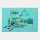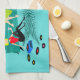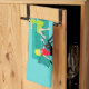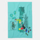 It looks like it’s going to be a fun time with this kitschy Retro Girls’ Night In Dish Towel. The 1960’s style, minimalist art design features two women with pink cocktails in a thoroughly mid century modern, aqua and turquoise living room. These ladies certainly know how to relax. The raven haired beauty in the flirty, green dress is lounging on the atomic sofa. Her blonde companion is sitting on a zebra print rug, wearing a red top and tight, black pants. The vintage, vinyl record player and paper lantern light fixtures set the mood. A framed, space age, globe art print hangs above the mod sofa.