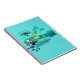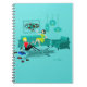 It looks like it’s going to be a fun time with this kitschy Retro Girls’ Night In Spiral Notebook. The 1960’s style, minimalist art design features two women with pink cocktails in a thoroughly mid century modern, aqua and turquoise living room. These ladies certainly know how to relax. The raven haired beauty in the flirty, green dress is lounging on the atomic sofa. Her blonde companion is sitting on a zebra print rug, wearing a red top and tight, black pants. The vintage, vinyl record player and paper lantern light fixtures set the mood. A framed, space age, globe art print hangs above the mod sofa.