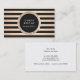 Digital image of sparkly rose gold sequins lined circle logo on black and copper striped pattern background. Hip and stylish design. Easily customise logo with your initials. A fashionable card design for anyone working in music, beauty, fashion or entertainment.