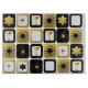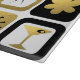 What's black and white and gold all over? It's this Retro Glamourous Gold Cutting Board. The mid century modern design features a grid of sophisticated images. There are mix and match patterns of mod flowers, starbursts, martini glasses, and impressionist stars on black, white, and gold backgrounds. This design is ideal, making every day a celebration. Order today because all that glitters really should be gold!