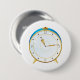 Retro Gold Alarm Clock with Blue Trim Timepiece 7.5 Cm Round Badge